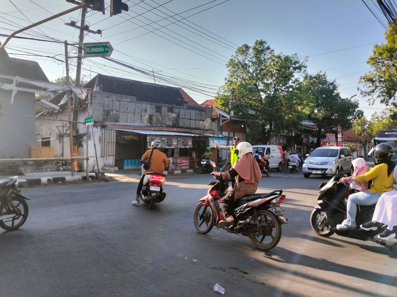 Aiptu Ach. Syafi dan anggotanya terlihat awak media ini sudah berdiri di simpang Polsek Sampang mulai pukul 06.30 Wib sampai pukul 07.30 Wib.