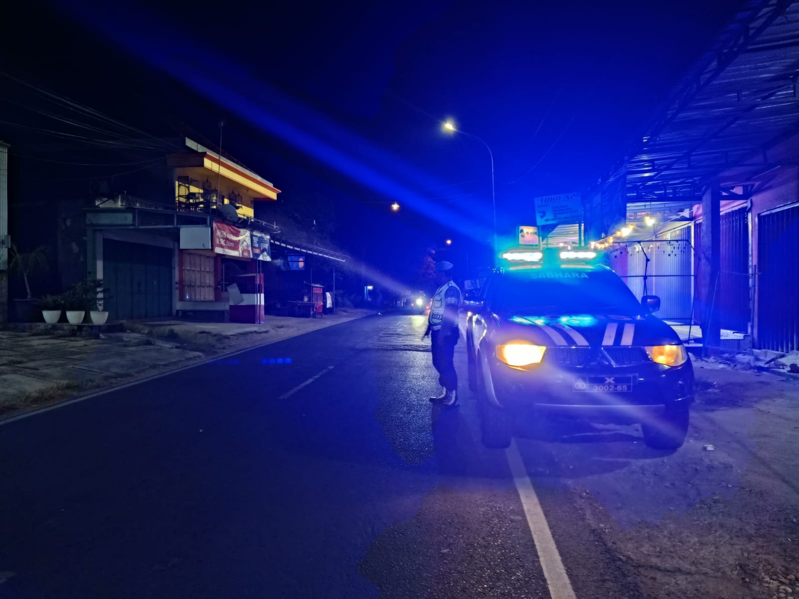 Anggota piket jaga malam Polsek Banyuates Aiptu Rifadi dan Aipda Cahyo melaksanakan Blue Light Patrol dari Mapolsek menuju Desa Banyuates dan Desa Jatra untuk memantau Kamtibmas dan memantau aktifitas masyarakat di sepanjang rute patroli.
