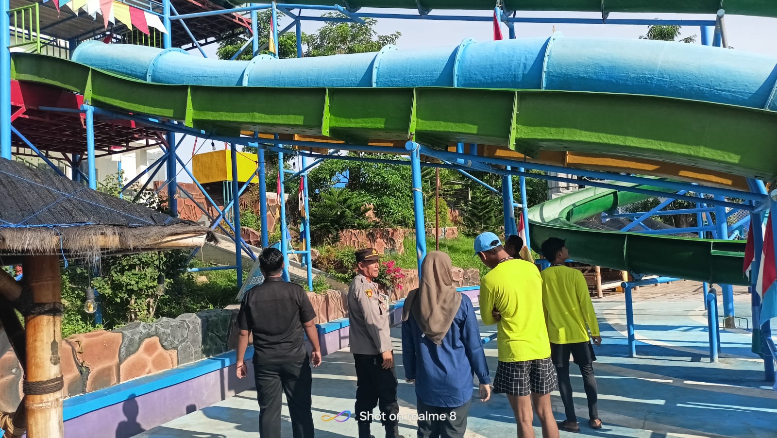 Sampang – Antisipasi kecelakaan air di objek wisata air yang ada di Kabupaten Sampang, AKP Tomo dan anggotanya mendatangi Sampang Water Park di Jl. Pahlawan Gang 1 Kelurahan Dalpenang Kecamatan Sampang Kabupaten Sampang – Jawa Timur, selasa (24/12/2024) pagi.