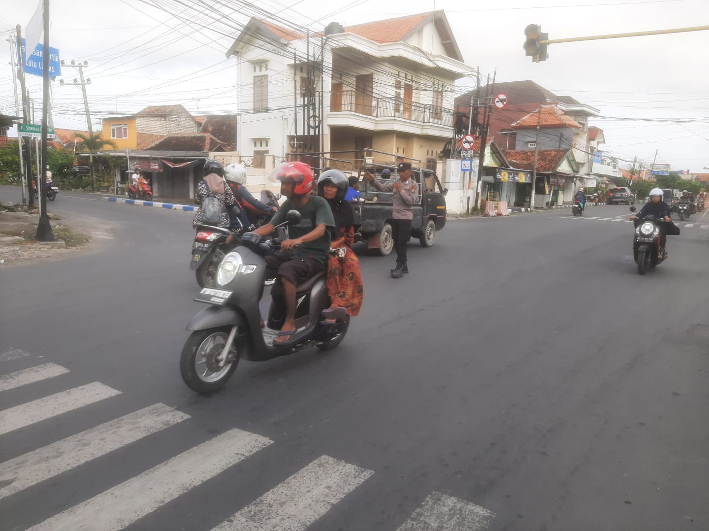 Sabtu, (29/11/2025) Bripka Heriyanto personil Polsek Sampang Polres Sampang melaksanakan program Commander Wish atau sapa pagi di Simpang jalan dekat Mapolsek Sampang.