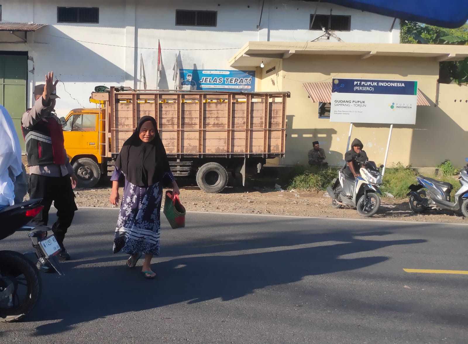 Bersama empat personel lainnya, Aipda Budi Cahyono mulai bersiaga sejak pukul 06.00 WIB. Selain mengatur ritme kendaraan untuk mencegah kemacetan di jalan protokol nasional tersebut, petugas juga proaktif membantu warga menyeberang jalan demi mencegah terjadinya kecelakaan lalu lintas.