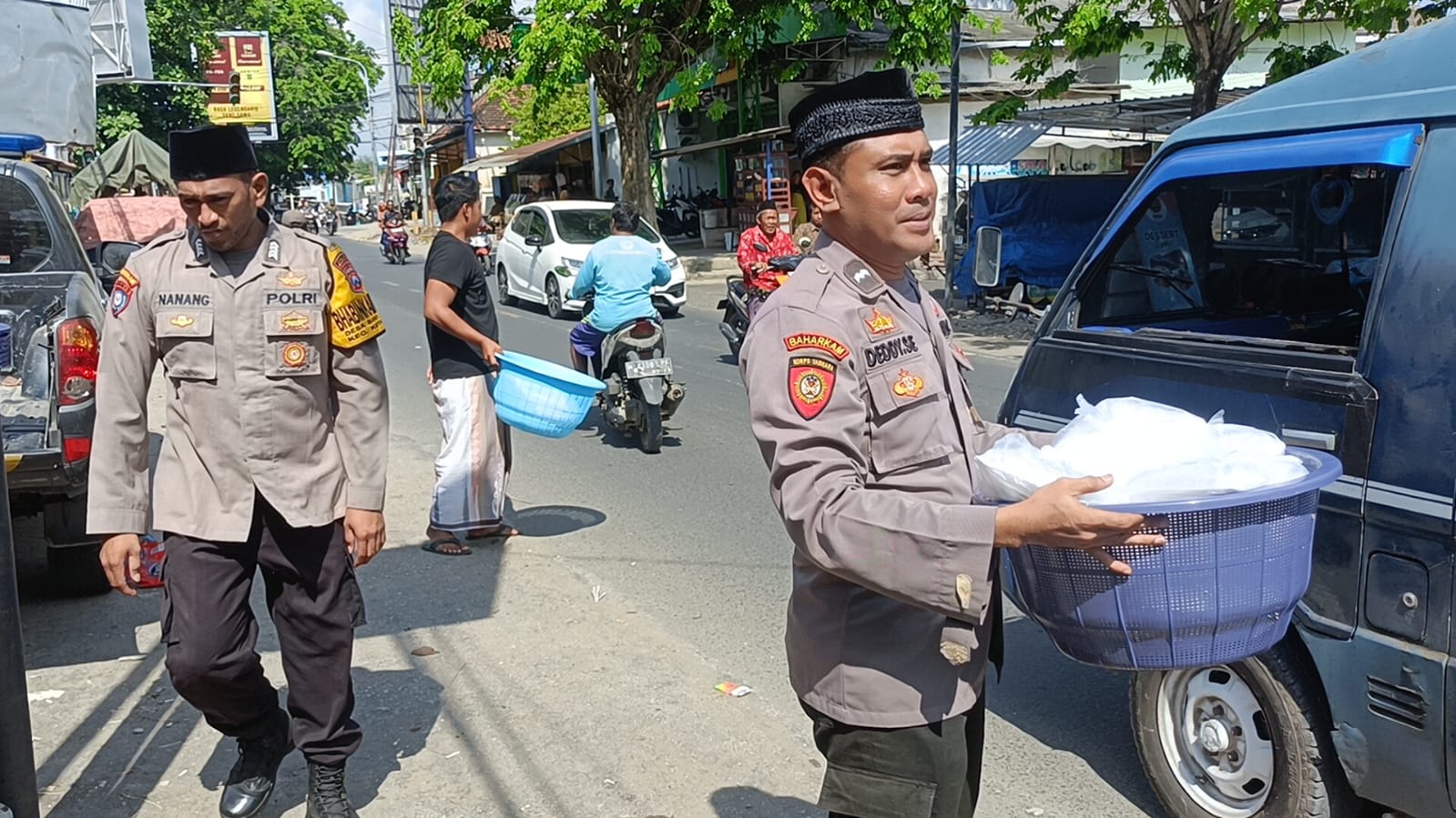 Kegiatan Jum’at Berkah yang dilaksanakan didepan Mapolsek Ketapang dipimpin Kanit Propam Aiptu Nur Fadly.