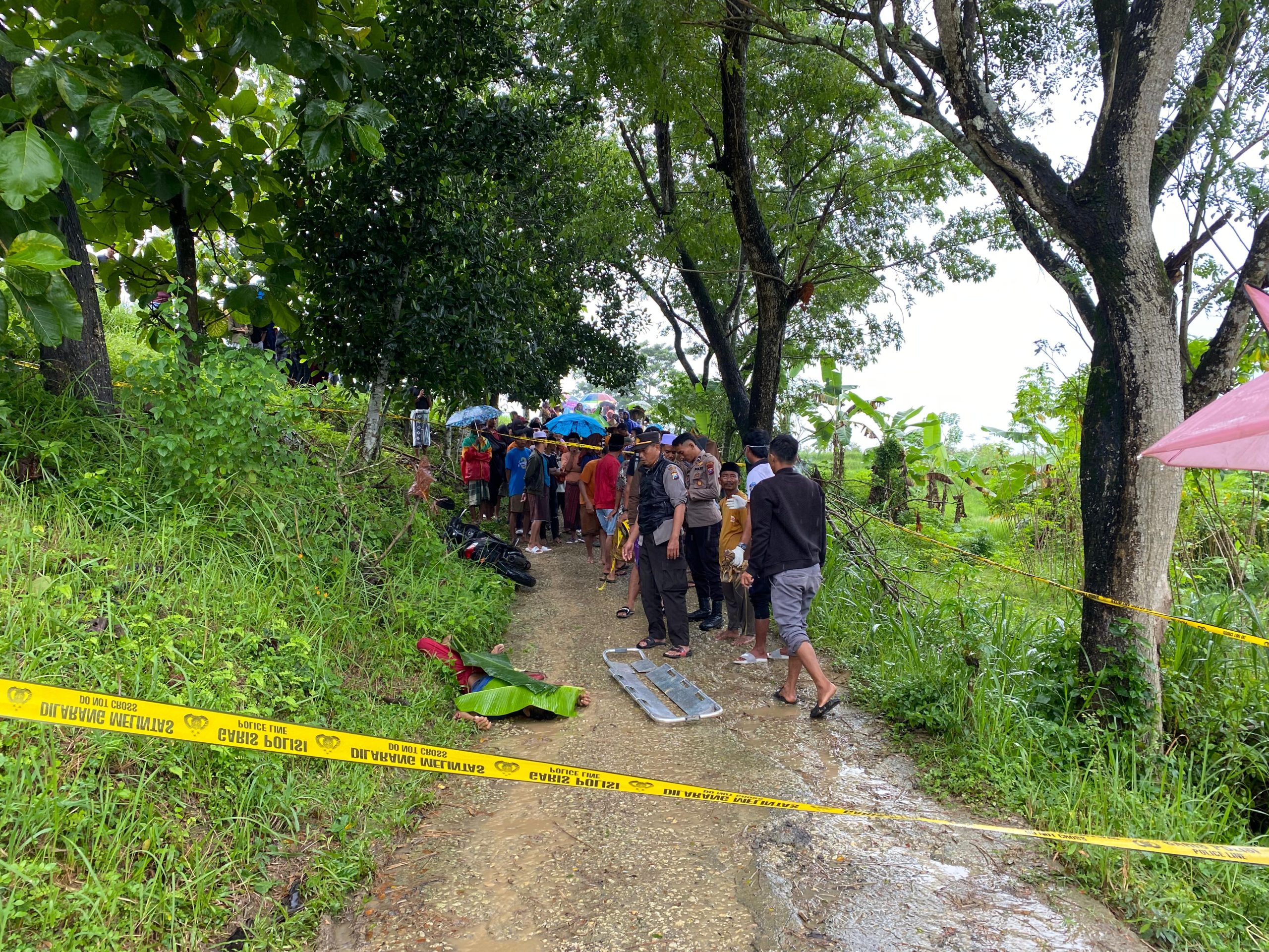 Dalam video berdurasi 28 detik juga tampak sepeda motor Honda Beat yang roboh tidak jauh posisinya dengan mayat tersebut.