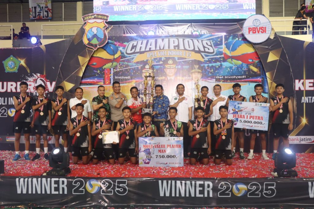 SIDOARJO – Turnament Bola Voli dalam Kejuaraan Provinsi (Kejurprov) antar klub U-15 se-Jawa Timur di GOR Delta, Sidoarjo Jawa Timur, resmi ditutup, Jumat (17/1).