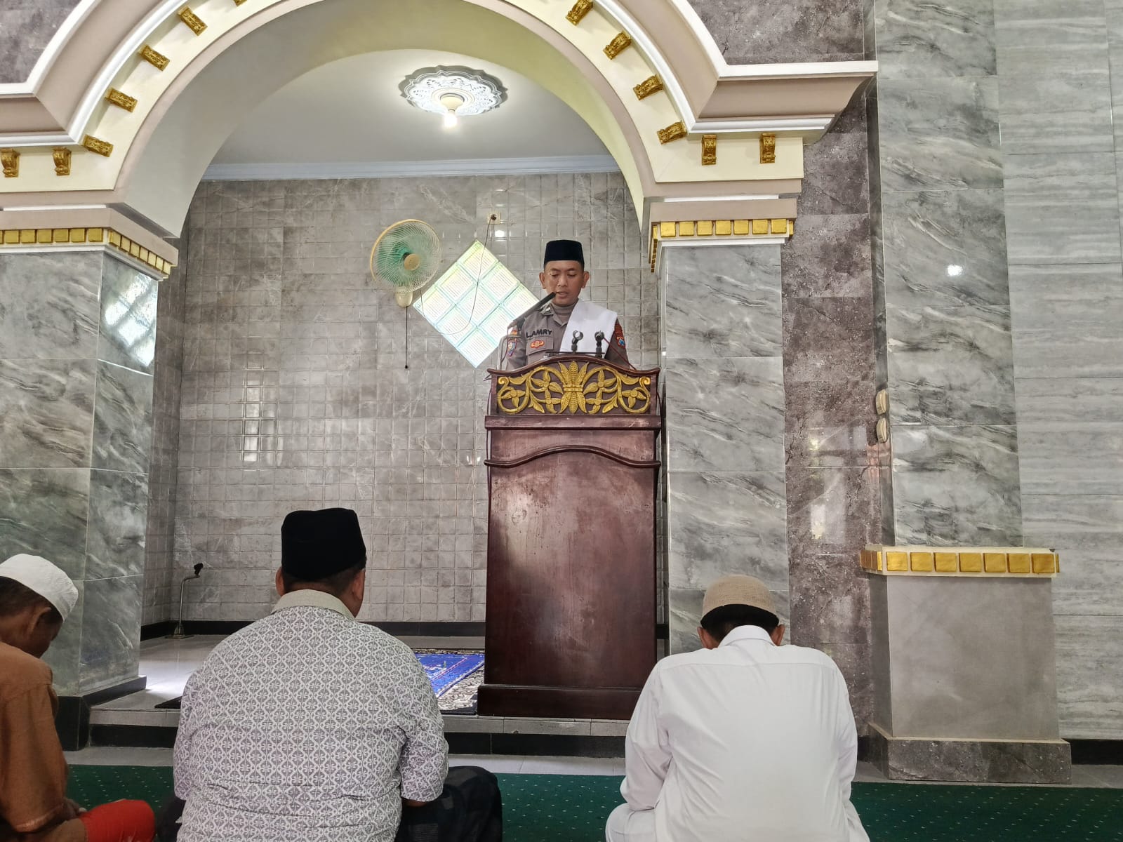 Usai pelaksanaan sholat Jum’at, kegiatan dilanjutkan dengan penyampaian pesan Kamtibmas. Mengingat masih dalam suasana bulan Syawal, mewakili Institusi Polres Sampang, ia menyampaikan ucapan selamat Idul Fitri 1447 H dan permohonan maaf lahir batin kepada seluruh warga.