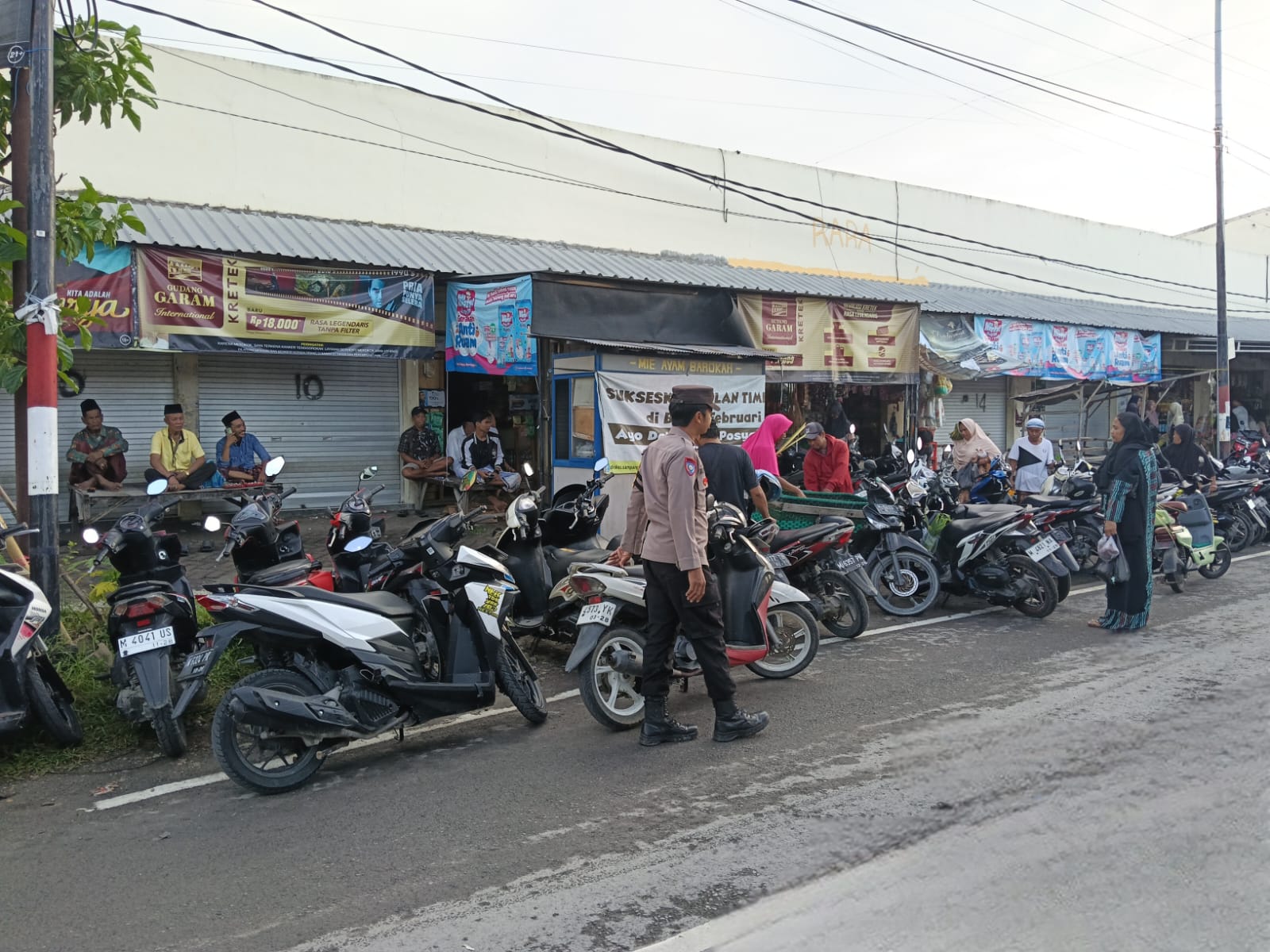 Selasa (24/06/2025) anggota Polsek pengarengan melaksanakan pengamanan dan pengaturan arus lalu lintas di depan Pasar Pengarengan.