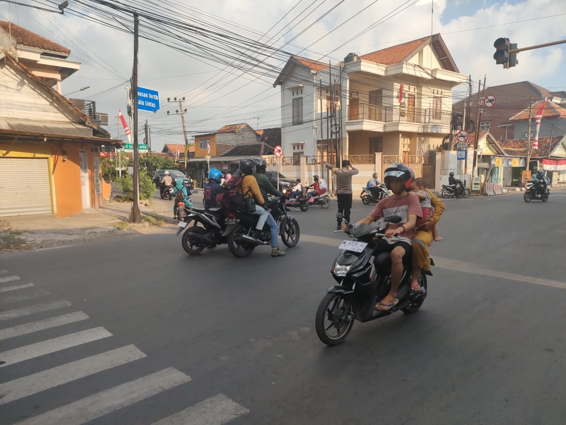Bripka Rahmad Argianto dan anggotanya terlihat awak media ini sudah berdiri di simpang Polsek Sampang mulai pukul 06.30 Wib.