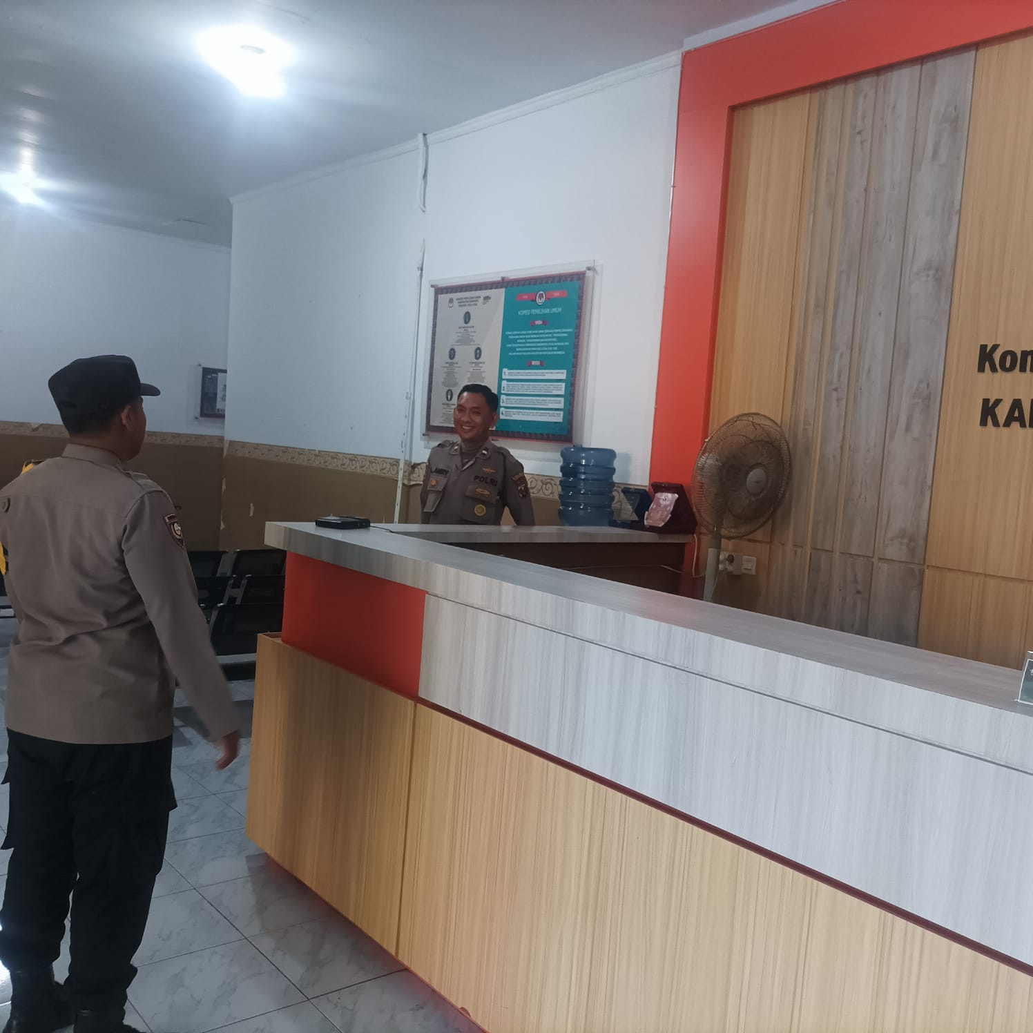 Ka SPKT Polsek Sampang dan anggota berdialog dengan petugas jaga kantor penyelenggara Pemilu dan personil Polri yang melaksanakan penjagaan di kedua kantor tersebut untuk terus meningkatkan kewaspadaan terhadap lingkungan kantor dan apabila terjadi gangguan untuk segera menghubungi Polsek Sampang ataupun Polres Sampang.