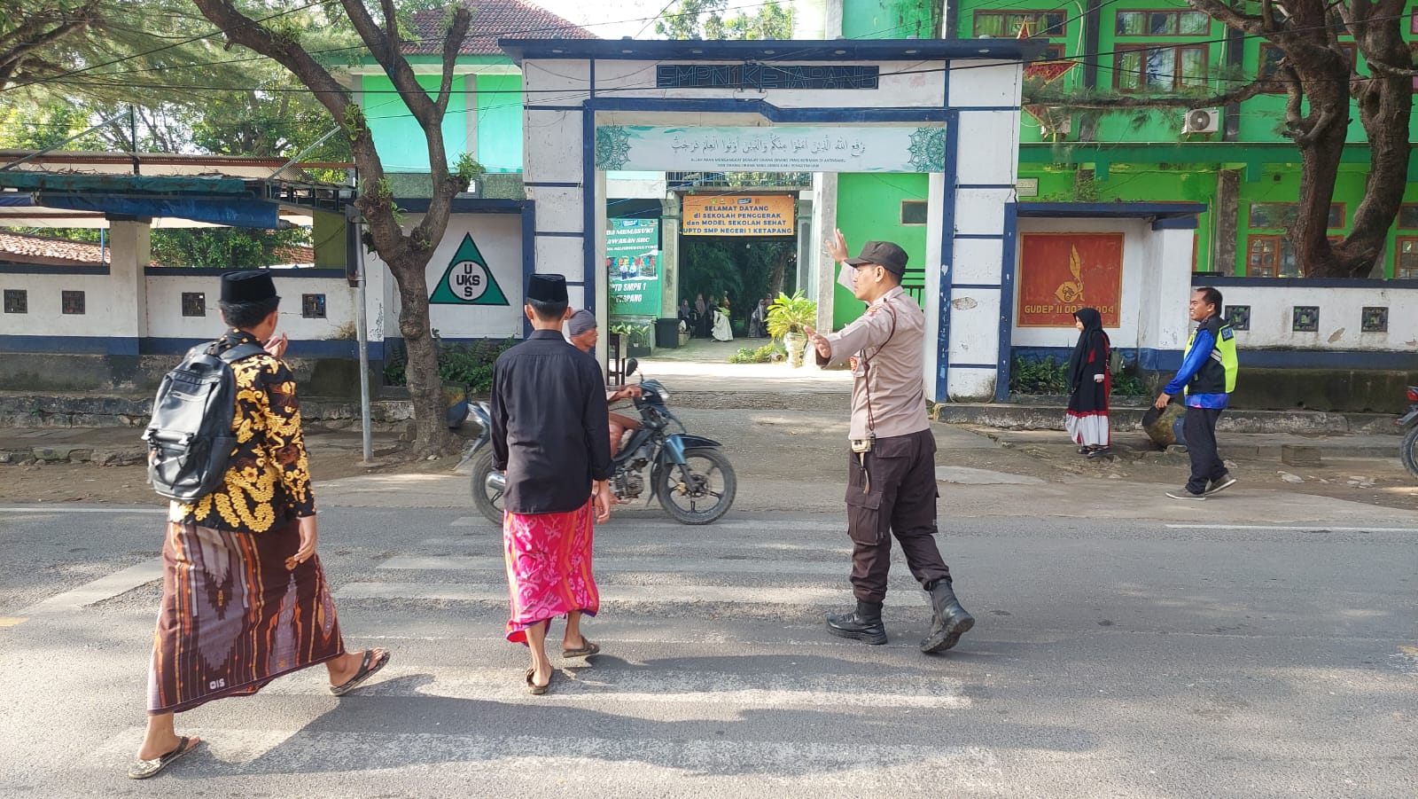Salah satu tempat yang sudah menjadi rutinitas personil Polsek Ketapang dalam memberikan pelayanan Kepolisian pagi hari adalah jalan raya depan Sekolah Menengah Pertama (SMP) Negeri 1 Ketapang Sampang – Jawa Timur.