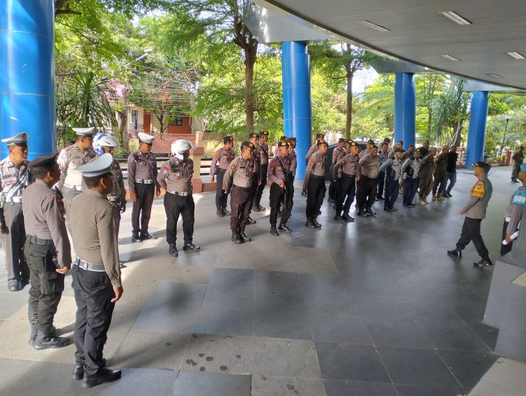Disampaikan Kompol Riko, personel gabungan dari TNI, Polri, Dishub dan Satpol PP yang dilibatkan dalam pengamanan rapat pleno terbuka yang diselanggarakan oleh KPU Kabupaten Kediri.