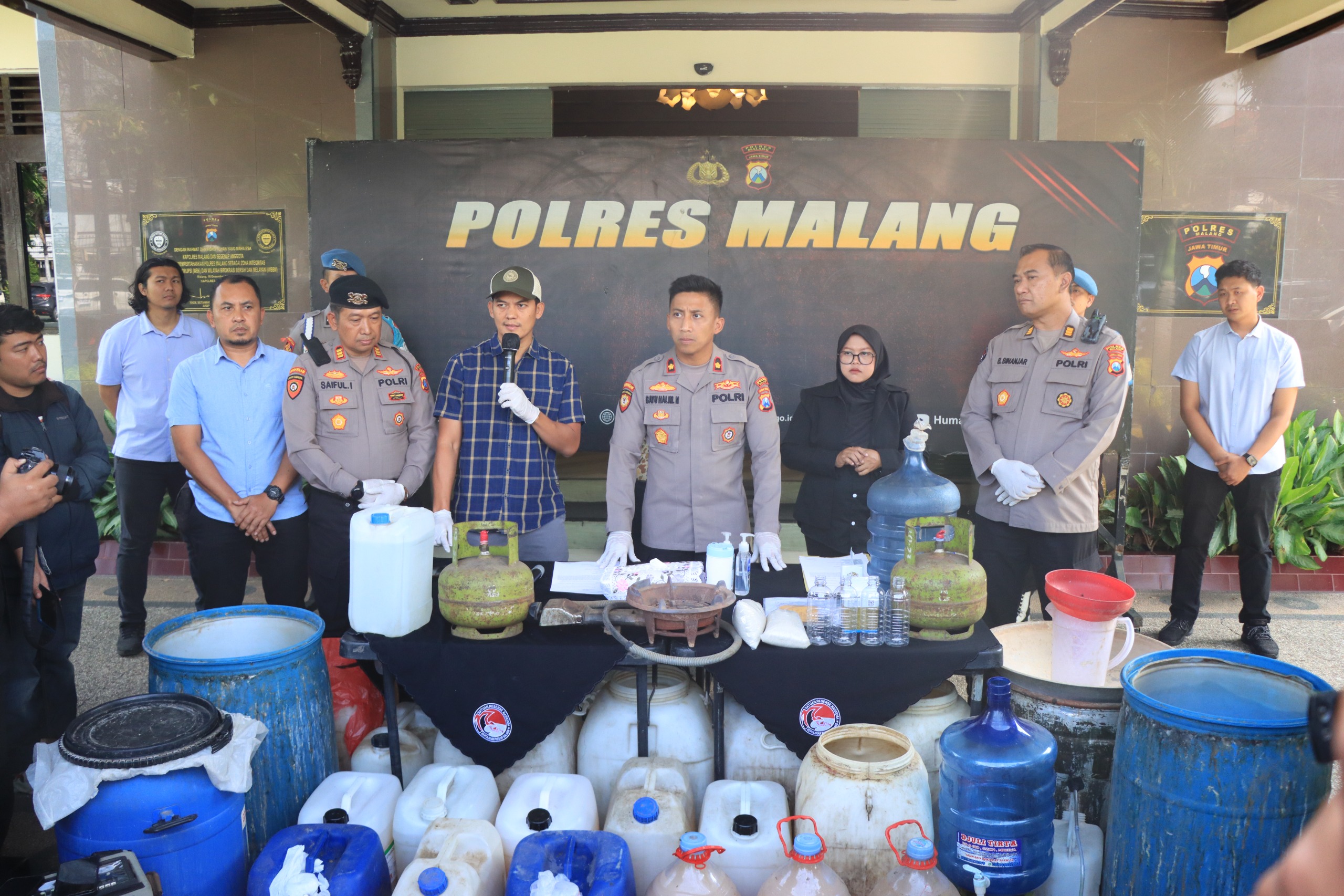 “Kami mendapat pengaduan dari warga melalui layanan 110 terkait dugaan aktivitas produksi miras ilegal. Informasi tersebut langsung kami tindak lanjuti,” kata Kompol Bayu dalam konferensi pers di Polres Malang, Kamis (19/6/2025).