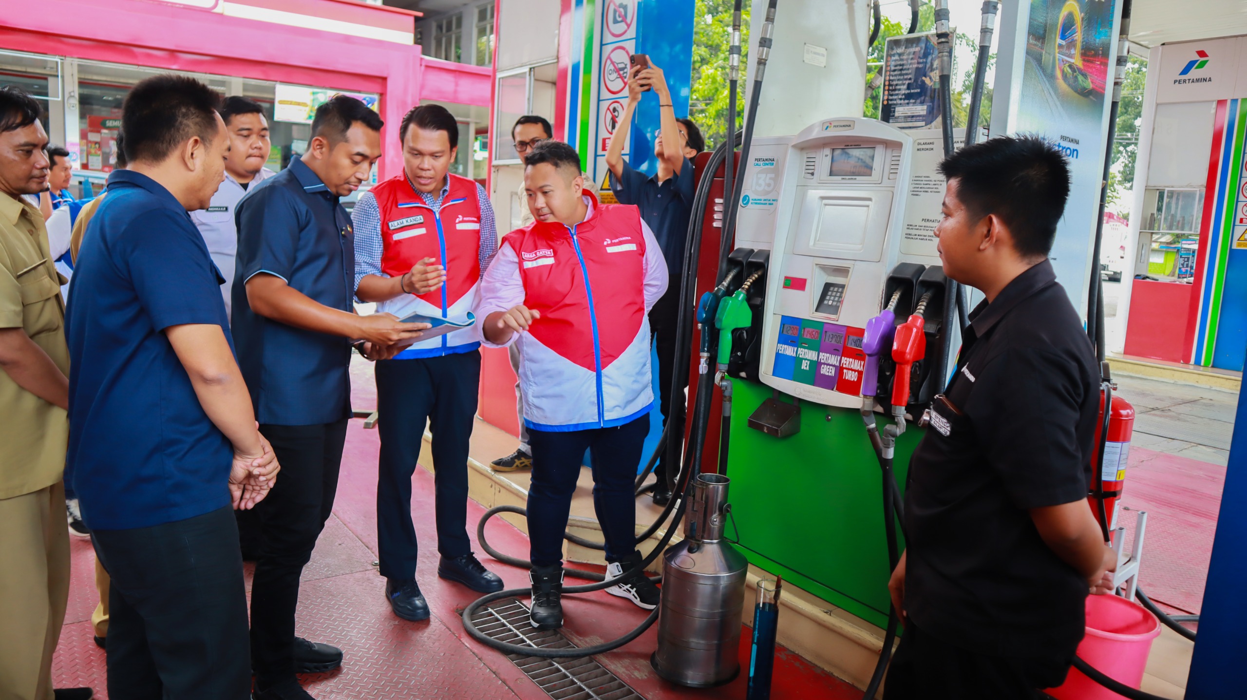 Pemeriksaan menggunakan alat pengukur density dan berat jenis BBM untuk memastikan kesesuaiannya dengan standar yang ditetapkan Kementerian Energi dan Sumber Daya Mineral (ESDM) serta Badan Meteorologi, Klimatologi, dan Geofisika (BMKG).