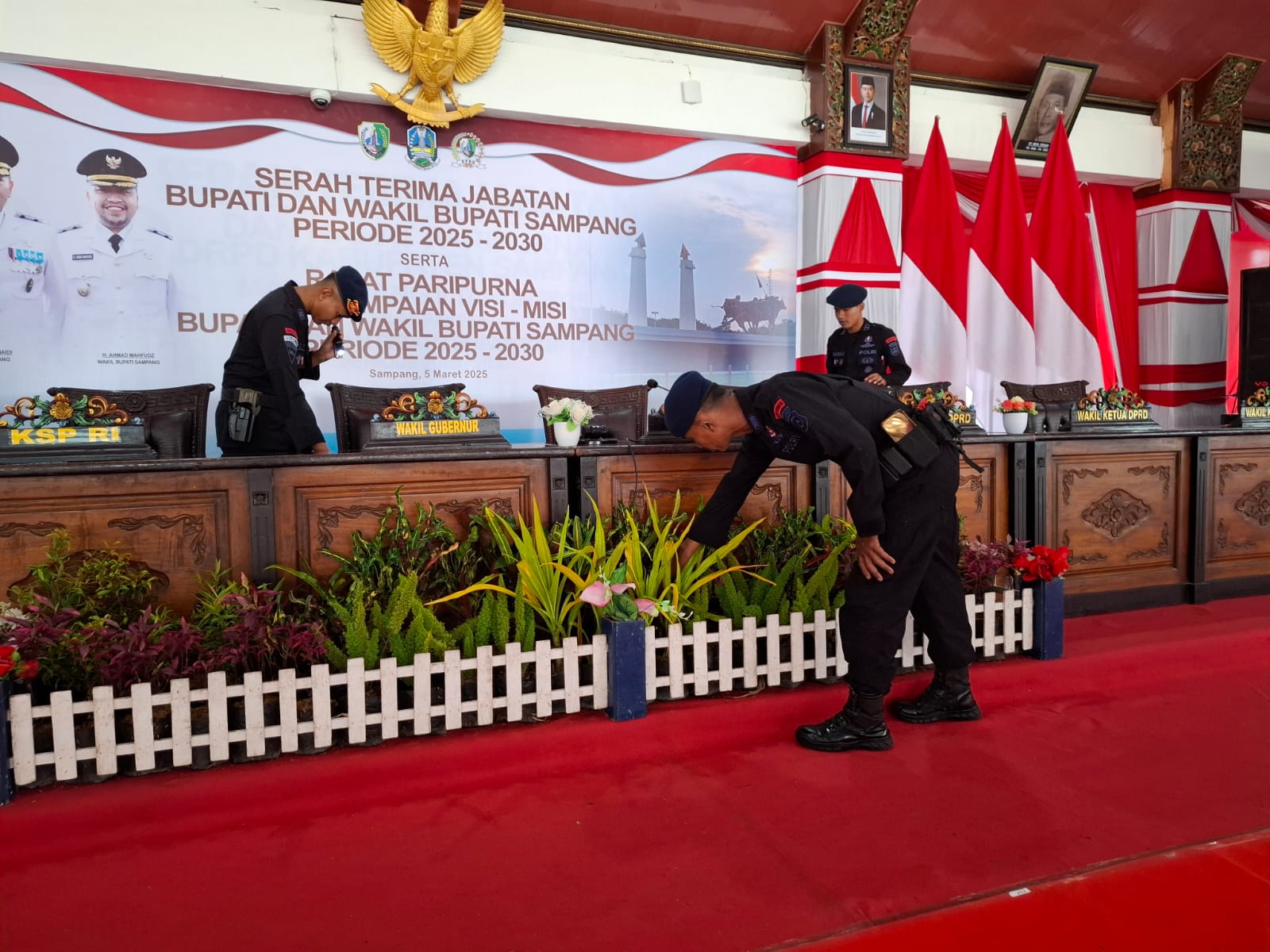 Selain personil Polres Sampang, pengamanan kegiatan Sertijab Bupati dan Wakil Bupati Sampang dibantu personil TNI dan Pemkab Sampang.