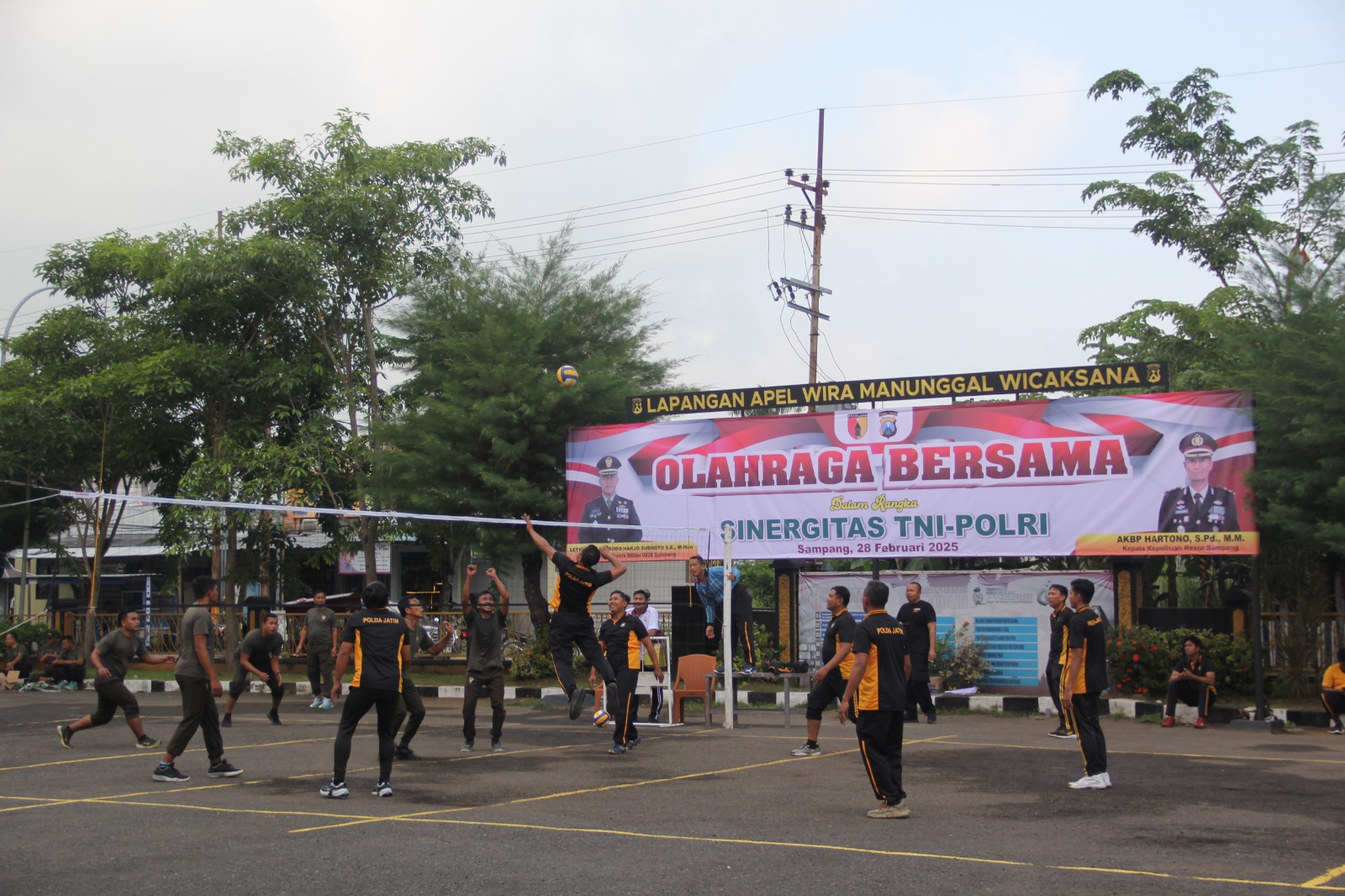 Tampak dari pantauan awak media, ratusan personil TNI-Polri melaksanakan senam pagi bersama dan dilanjutkan dengan pertandingan bola voli yang diikuti Kapolres Sampang, Dandim 0828/Sampang dan anggotanya.