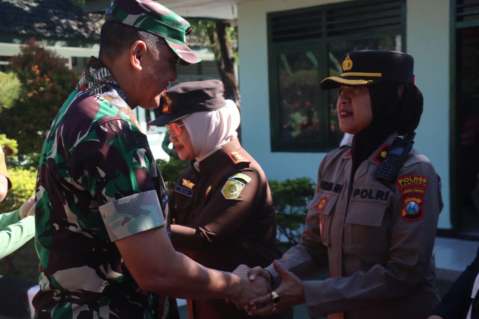 Pangdam disambut secara resmi oleh Bupati Sampang, H. Slamet Junaidi, Wakapolres Sampang Kompol Hosna Nurhidayah, beserta jajaran Forkopimda Sampang.